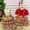 Salopete Adulto Junino Atenção: esse modelo é apenas a salopete, blusa não inclusa. Confeccionado em tecido Tecnosport Plus, esse vestido oferece um caimento impecável, sofisticado e confortável, perfeito para as comemorações mais queridas do ano. Um modelo que une o clássico das festas juninas com acabamento delicado e bem estruturado. Detalhes do modelo• Tecido principal: 100% Poliéster (Tecnosport Plus)• Forro do corpo: 100% Poliéster• Forro da saia: 100% PoliésterIdeal paraFestas Juninas e Julinas, apresentações escolares, quadrilha, São João e eventos temáticos no estilo caipira. Informações Importantes As medidas podem variar em até 2cm. Recomendamos sempre consultar a tabela de medidas antes da compra para evitar erros. Tecido 100% poliester Para um volume extra, indicamos o uso de saiote de armação, vendido separadamente na categoria Acessórios. Tiara e outros acessórios não acompanham o produto, mas estão disponíveis em nosso site. Calçado vendido separadamente, disponível na categoria Calçados
