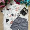 Conjunto composto por: Camisa Social Manga Curta off florida e Shorts na cor cinza