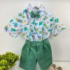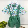 Conjunto composto por: Camisa Personagem, Shorts com suspensorio e gravata borboleta na cor Azul Tiffany. Demais peças ou acessórios, não inclusos.