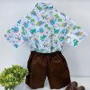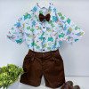 Conjunto composto por: Camisa Personagem, Shorts com suspensorio e gravata borboleta na cor Azul Tiffany. Demais peças ou acessórios, não inclusos.