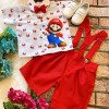 Conjunto composto por: Camisa Personagem, Shorts com suspensorio e gravata borboleta na cor Vermelha. Demais peças ou acessórios, não inclusos.