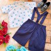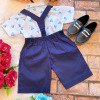 Conjunto composto por: Camisa Personagem, Shorts com suspensorio e gravata borboleta na cor Azul Royal.