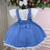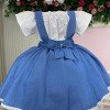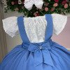 Confeccionado em tecido misto em poliéster e algodão para não incomodar a criança e proporcionando um caimento incrível e sofisticado, possui gola reta, comprimento médio, mangas, acabamento com lindo laço para ajustar a cintura na parte posterior do vestido completa o look dos sonhos!