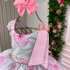 Um vestido encantador, feito para transformar qualquer momento em um verdadeiro conto de fadas!Com estampa floral delicada em tons de rosa e verde claro, o modelo traz um toque romântico e sofisticado. O busto apresenta detalhes com pregas e pequenas pérolas, enquanto a cintura é marcada com um cinto de pérolas que realça o caimento da saia em camadas de tule leve e esvoaçante. Nas costas, o charme fica por conta do laço rosa volumoso e das alcinhas cruzadas com lastex confortável, garantindo ajuste perfeito e delicadeza em cada detalhe.   Ideal para festas, aniversários e ensaios fotográficos. Detalhes que encantam  Busto com bordado em matelassê e mini pérolas aplicadas à mão  Cinto com pérolas na cintura, valorizando o caimento da saia  Saia em camadas de tule suave, com movimento leve e delicado Estampa floral em tons de rosa e verde claro, super feminina  Laço grande nas costas com acabamento perfeito  Alças cruzadas e lastex nas costas para conforto e melhor ajuste   Um vestido pensado para brilhar em cada detalhe — delicado, romântico e digno de uma verdadeira princesa! Informações Importantes  As medidas podem variar em até 2cm. Recomendamos sempre consultar a tabela de medidas antes da compra para evitar erros. Tecido Tecnosport 100% poliester Para um volume extra, indicamos o uso de saiote de armação, vendido separadamente na categoria Acessórios. Tiara e outros acessórios não acompanham o produto, mas estão disponíveis em nosso site. Calçado vendido separadamente, disponível na categoria Calçados As cores do produto podem sofrer variações de tonalidade conforme a configuração da tela do seu dispositivo.