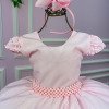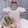 TECIDO 80% ALGODÃO 20% POLIESTERConfeccionado em tecido misto possui forro em poliéster e algodão para não incomodar a criança e proporcionando um caimento incrível e sofisticado, possui gola redonda, comprimento médio, mangas curtas, possui elástico nas costas para melhor ajuste, e acabamento com lindo laço na parte posterior do vestido completa o look dos sonhos! * Medidas podem variar em até 4cm * Caso queira o vestido mais armado, recomendamos o uso do saiote ou anágua de armação, disponível no nosso site na categoria acessórios. * Tiara vendida separadamente, disponível em nosso site na categoria acessórios. * Calçados vendido separadamente, disponível em nosso site na categoria calçados. * LEMBRANDO QUE PODERA HAVER VARIAÇÃO DE TONALIDADE DO PRODUTO DEPENDENDO DA TELA DO SEU DISPOSITIVO
