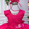 TECIDO 80% ALGODÃO 20% POLIESTERConfeccionado em tecido misto possui forro em poliéster e algodão para não incomodar a criança e proporcionando um caimento incrível e sofisticado, possui gola redonda, comprimento médio, mangas curtas, possui elástico nas costas para melhor ajuste, e acabamento com lindo laço na parte posterior do vestido completa o look dos sonhos! * Medidas podem variar em até 4cm * Caso queira o vestido mais armado, recomendamos o uso do saiote ou anágua de armação, disponível no nosso site na categoria acessórios. * Tiara vendida separadamente, disponível em nosso site na categoria acessórios. * Calçados vendido separadamente, disponível em nosso site na categoria calçados. * LEMBRANDO QUE PODERA HAVER VARIAÇÃO DE TONALIDADE DO PRODUTO DEPENDENDO DA TELA DO SEU DISPOSITIVO