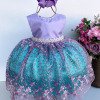 TECIDO 100% POLIÉSTER Confeccionado em tecido misto possui forro em poliéster e algodão para não incomodar a criança e proporcionando um caimento incrível e sofisticado, possui gola redonda, comprimento médio, mangas curtas, possui elástico nas costas para melhor ajuste, acabamento com lindo laço na parte posterior do vestido completa o look dos sonhos! * Medidas podem variar em até 4cm * Caso queira o vestido mais armado, recomendamos o uso do saiote ou anágua de armação, disponível no nosso site na categoria acessórios. * Tiara vendida separadamente, disponível em nosso site na categoria acessórios. * Calçados Vendindos Separamente
