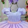 OBS: laço pode variar entre lilas ou estampado, depende do corte do tecidoConfeccionado em tecido misto possui forro em poliéster e algodão para não incomodar a criança e proporcionando um caimento incrível e sofisticado, possui comprimento médio,sem mangas,possui elástico nas costas para melhor ajuste, alças de amarrar completa o look dos sonhos! * Medidas podem variar em até 4cm * Caso queira o vestido mais armado, recomendamos o uso do saiote ou anágua de armação, disponível no nosso site na categoria acessórios. * Tiara vendida separadamente, disponível em nosso site na categoria acessórios. * Calçados vendido separadamente, disponível em nosso site na categoria calçados.* LEMBRANDO QUE PODERA HAVER VARIAÇÃO DE TONALIDADE DO PRODUTO DEPENDENDO DA TELA DO SEU DISPOSITIVO
