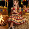 Vestido Infantil Junino Confeccionado em tecido Tecnosport Plus, esse vestido oferece um caimento impecável, sofisticado e confortável, perfeito para as comemorações mais queridas do ano. Um modelo que une o clássico das festas juninas com acabamento delicado e bem estruturado. Detalhes do modelo• Tecido principal: 100% Poliéster (Tecnosport Plus)• Forro do corpo: 100% Poliéster• Forro da saia: 100% PoliésterIdeal paraFestas Juninas e Julinas, apresentações escolares, quadrilha, São João e eventos temáticos no estilo caipira. Informações Importantes As medidas podem variar em até 2cm. Recomendamos sempre consultar a tabela de medidas antes da compra para evitar erros. Tecido 100% poliester Para um volume extra, indicamos o uso de saiote de armação, vendido separadamente na categoria Acessórios. Tiara e outros acessórios não acompanham o produto, mas estão disponíveis em nosso site. Calçado vendido separadamente, disponível na categoria Calçados As cores do produto podem sofrer variações de tonalidade conforme a configuração da tela do seu dispositivo.