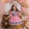 Vestido Infantil Junino  Confeccionado em tecido Tecnosport Plus, esse vestido oferece um caimento impecável, sofisticado e confortável, perfeito para as comemorações mais queridas do ano. Um modelo que une o clássico das festas juninas com acabamento delicado e bem estruturado. Detalhes do modelo• Tecido principal: 100% Poliéster (Tecnosport Plus)• Forro do corpo: 100% Poliéster• Forro da saia: 100% PoliésterIdeal paraFestas Juninas e Julinas, apresentações escolares, quadrilha, São João e eventos temáticos no estilo caipira.     Informações Importantes  As medidas podem variar em até 2cm. Recomendamos sempre consultar a tabela de medidas antes da compra para evitar erros.  Tecido 100% poliester Para um volume extra, indicamos o uso de saiote de armação, vendido separadamente na categoria Acessórios. Tiara e outros acessórios não acompanham o produto, mas estão disponíveis em nosso site. Calçado vendido separadamente, disponível na categoria Calçados