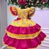 Vestido Junino Banana Club Luxo Coração Junino Amarelo