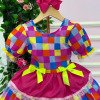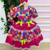 Vestido Infantil Junino  Confeccionado em tecido Tecnosport, esse vestido oferece um caimento impecável, sofisticado e confortável, perfeito para as comemorações mais queridas do ano. Um modelo que une o clássico das festas juninas com acabamento delicado e bem estruturado. Detalhes do modelo• Tecido principal: 100% Poliéster (Tecnosport Plus)• Forro do corpo: 100% Poliéster• Forro da saia: 100% PoliésterIdeal paraFestas Juninas e Julinas, apresentações escolares, quadrilha, São João e eventos temáticos no estilo caipira.     Informações Importantes  As medidas podem variar em até 2cm. Recomendamos sempre consultar a tabela de medidas antes da compra para evitar erros.  Tecido 100% poliester Para um volume extra, indicamos o uso de saiote de armação, vendido separadamente na categoria Acessórios. Tiara e outros acessórios não acompanham o produto, mas estão disponíveis em nosso site. Calçado vendido separadamente, disponível na categoria Calçados