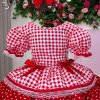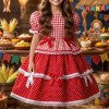 Vestido Infantil Junino Confeccionado em tecido Tecnosport, esse vestido oferece um caimento impecável, sofisticado e confortável, perfeito para as comemorações mais queridas do ano. Um modelo que une o clássico das festas juninas com acabamento delicado e bem estruturado. Detalhes do modelo• Tecido principal: 100% Poliéster (Tecnosport Plus)• Forro do corpo: 100% Poliéster• Forro da saia: 100% PoliésterIdeal paraFestas Juninas e Julinas, apresentações escolares, quadrilha, São João e eventos temáticos no estilo caipira. Informações Importantes As medidas podem variar em até 2cm. Recomendamos sempre consultar a tabela de medidas antes da compra para evitar erros. Tecido 100% poliester Para um volume extra, indicamos o uso de saiote de armação, vendido separadamente na categoria Acessórios. Tiara e outros acessórios não acompanham o produto, mas estão disponíveis em nosso site. Calçado vendido separadamente, disponível na categoria Calçados