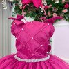 Coleção Mariely – Vestido Infantil O vestido Mariely é a definição de elegância clássica com um toque moderno. Uma peça imponente, pensada para quem quer um visual marcante, sofisticado e absolutamente encantador desde o primeiro olhar. Detalhes que fazem a diferença• Busto estruturado com costuras geométricas e delicadas aplicações de pérolas, trazendo textura e requinte.• Alças delicadas para amarrar nos ombros, permitindo ajuste perfeito e um charme extra ao visual.• Cintura com faixa em brilho sutil, valorizando o caimento e destacando a silhueta.• Saia ampla em tule com várias camadas, volumosa, leve e com movimento impecável.Perfeito paraFestas de aniversário, daminhas, casamentos, formaturas infantis, ensaios fotográficos e ocasiões em que o verde profundo transmite elegância e presença. Coleção MarielyPara meninas que gostam de brilhar com delicadeza, estilo e um toque de sofisticação atemporal. Informações Importantes As medidas podem variar em até 2cm. Recomendamos sempre consultar a tabela de medidas antes da compra para evitar erros. Tecido 100% poliester Para um volume extra, indicamos o uso de saiote de armação, vendido separadamente na categoria Acessórios. Tiara e outros acessórios não acompanham o produto, mas estão disponíveis em nosso site. Calçado vendido separadamente, disponível na categoria Calçados As cores do produto podem sofrer variações de tonalidade conforme a configuração da tela do seu dispositivo.