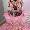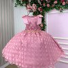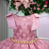 Nosso vestido Marie Poá Rose é puro charme e elegância — com tule delicado, laço exuberante e detalhes em pérolas douradas que fazem brilhar qualquer ocasião. Perfeito para festas, aniversários e momentos especiais, ele transforma cada passo em um verdadeiro desfile de fofura e estilo! Detalhes: Tecido Tule com textura em poás (bolinhas) sobre base lisa, conferindo volume e movimento à saia. Cor rose intenso, clássico e elegante. Corpo Estruturado e confortável, com corte arredondado no decote. Mangas Curtas e reforçadas, com aplicação de laço em cada ombro — um deles adornado com broche de pérola e dourado, que dá um toque sofisticado. Cintura Marcada com faixa de pedrinhas e pérolas douradas, trazendo brilho e feminilidade. Costas Abertura com botões e recorte arredondado, além de um laço volumoso central que completa o visual com graciosidade. Saia Levemente armada com camadas de tule, criando um caimento fluido e delicado. Informações Importantes As medidas podem variar em até 2cm. Recomendamos sempre consultar a tabela de medidas antes da compra para evitar erros. Tecido 100% poliester Para um volume extra, indicamos o uso de saiote de armação, vendido separadamente na categoria Acessórios. Tiara e outros acessórios não acompanham o produto, mas estão disponíveis em nosso site. Calçado vendido separadamente, disponível na categoria Calçados As cores do produto podem sofrer variações de tonalidade conforme a configuração da tela do seu dispositivo.