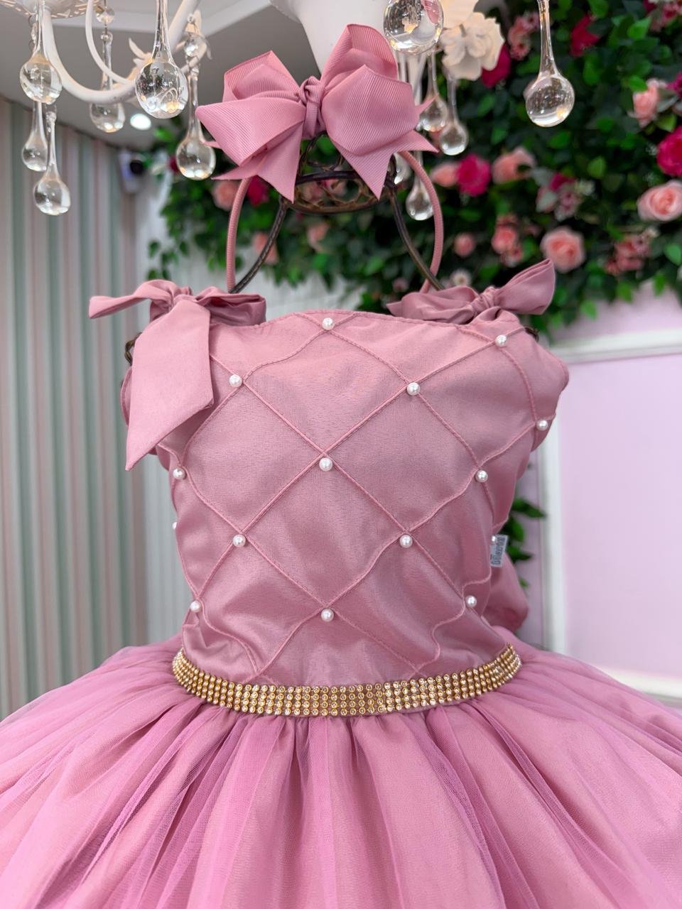 Confeccionado em tecido misto possui forro em poliéster e algodão para não incomodar a criança e proporcionando um caimento incrível e sofisticado, possui gola redonda, comprimento médio, mangas curtas, possui elástico nas costas para melhor ajuste, acabamento com lindo laço na parte posterior do vestido completa o look dos sonhos!
