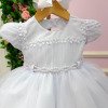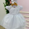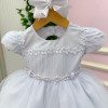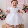 Vestido Infantil Off – Delicadeza que Encanta Esse vestido é a definição de clássico infantil com toque de princesa. Pensado para momentos especiais, ele une suavidade, elegância e um visual que fica lindo tanto ao vivo quanto nas fotos. Detalhes que fazem a diferença• Busto em tule com apliques de flores.• Modelagem mangas com tule, leve e confortável para a criança.• Cintura com acabamento em pérolas, trazendo um charme refinado ao visual.• Saia rodada em camadas de tule, volumosa na medida certa, com caimento leve e etéreo. Ideal paraAniversários, daminhas, sessões fotográficas e eventos especiais em que representa pureza e elegância. Informações Importantes As medidas podem variar em até 2cm. Recomendamos sempre consultar a tabela de medidas antes da compra para evitar erros. Tecido 100% poliester Para um volume extra, indicamos o uso de saiote de armação, vendido separadamente na categoria Acessórios. Tiara e outros acessórios não acompanham o produto, mas estão disponíveis em nosso site. Calçado vendido separadamente, disponível na categoria Calçados As cores do produto podem sofrer variações de tonalidade conforme a configuração da tela do seu dispositivo.