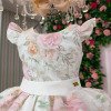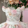 Vestido Luma  Um modelo que exala delicadeza e encanto!O Vestido Luma é a escolha perfeita para meninas que amam um visual romântico e elegante. Com estampa floral suave em tons de rosa e creme, ele combina beleza e conforto em cada detalhe. O busto é ricamente adornado com pérolas aplicadas à mão, e as mangas trazem o toque clássico que toda princesa merece.Nas costas, o lastex proporciona ajuste confortável, enquanto o laço volumoso finaliza o look com charme e sofisticação. Destaques do modelo: Estampa floral exclusiva Busto com pérolas delicadas Manga com acabamento impecável Lastex nas costas para conforto Tecido leve e caimento perfeito   Um vestido cheio de graça, ideal para festas, aniversários e ocasiões especiais!  Informações Importantes  As medidas podem variar em até 2cm. Recomendamos sempre consultar a tabela de medidas antes da compra para evitar erros. Tecido Externo 100% poliamida/ Tecido Interno 100% poliester Para um volume extra, indicamos o uso de saiote de armação, vendido separadamente na categoria Acessórios. Tiara e outros acessórios não acompanham o produto, mas estão disponíveis em nosso site. Calçado vendido separadamente, disponível na categoria Calçados As cores do produto podem sofrer variações de tonalidade conforme a configuração da tela do seu dispositivo.