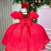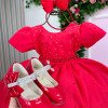 TECIDO LESE: 90% Poliester 10% AlgodãoConfeccionado em tecido misto possui forro em poliéster e algodão para não incomodar a criança e proporcionando um caimento incrível e sofisticado, possui gola redonda, comprimento médio, mangas curtas, contém, também, elástico nas costas para melhor ajuste, acabamento com lindo laço na parte posterior do vestido completa o look dos sonhos! * Medidas podem variar em até 4cm. * Caso queira o vestido mais armado, recomendamos o uso do saiote ou anágua de armação, disponível no nosso site na categoria acessórios. * Tiara vendida separadamente, disponível em nosso site na categoria acessórios. * Calçados vendido separadamente, disponível em nosso site na categoria calçados. * LEMBRANDO QUE PODERA HAVER VARIAÇÃO DE TONALIDADE DO PRODUTO DEPENDENDO DA TELA DO SEU DISPOSITIVO