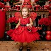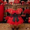 Confeccionado em tecido misto possui forro em poliéster e algodão para não incomodar a criança e proporcionando um caimento incrível e sofisticado, possui gola redonda, comprimento médio, mangas curtas, possui elástico nas costas para melhor ajuste, acabamento com lindo laço na parte posterior do vestido completa o look dos sonhos! * Medidas podem variar em até 4cm * Caso queira o vestido mais armado, recomendamos o uso do saiote ou anágua de armação, disponível no nosso site na categoria acessórios. *OBS: Esse modelo acompanha Asa e Tiara.