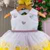 TECIDO TULE E 100% POLIESTER P até 4 meses M até 7 meses G até 12 meses Isso é aproximadamente,sempre importante ir pela tabela de medidas para não ter erro Confeccionado em tecido misto possui forro em poliéster e algodão para não incomodar a criança e proporcionando um caimento incrível e sofisticado, possui gola redonda,comprimento médio, mangas curtas, acabamento com lindo laço na parte posterior do vestido completa o look dos sonhos! FLORISTA,FESTA,LUXO,JARDIM ENCANTADDO,BORBOLETA,FLORESTA ENCANTADA,BABY,BEBE,BEBÊ,BATA,BATINHA,CORAÇÕES,CORAÇÃO * Medidas podem variar em até 4cm. * Caso queira o vestido mais armado, recomendamos o uso do saiote ou anágua de armação, disponível no nosso site na categoria acessórios.* Tiara vendida separadamente, disponível em nosso site na categoria acessórios. * Calçados vendido separadamente, disponível em nosso site na categoria calçados.* Asa vendida separadamente, disponível em nosso site na categoria Outros – Asas de borboleta. * LEMBRANDO QUE PODERA HAVER VARIAÇÃO DE TONALIDADE DO PRODUTO DEPENDENDO DA TELA DO SEU DISPOSITIVO