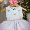 TECIDO TULE E 100% POLIESTER P até 4 meses M até 7 meses  G até 12 meses   Isso é aproximadamente,sempre importante ir pela tabela de medidas para não ter erro Confeccionado em tecido misto possui forro em poliéster e algodão para não incomodar a criança e proporcionando um caimento incrível e sofisticado, possui gola redonda,comprimento médio, mangas curtas, acabamento com lindo laço na parte posterior do vestido completa o look dos sonhos! FLORISTA,FESTA,LUXO,JARDIM ENCANTADDO,BORBOLETA,FLORESTA ENCANTADA,BABY,BEBE,BEBÊ,BATA,BATINHA,CORAÇÕES,CORAÇÃO   * Medidas podem variar em até 4cm. * Caso queira o vestido mais armado, recomendamos o uso do saiote ou anágua de armação, disponível no nosso site na categoria acessórios.* Tiara vendida separadamente, disponível em nosso site na categoria acessórios. * Calçados vendido separadamente, disponível em nosso site na categoria calçados.* Asa vendida separadamente, disponível em nosso site na categoria Outros – Asas de borboleta.   * LEMBRANDO QUE PODERA HAVER VARIAÇÃO DE TONALIDADE DO PRODUTO DEPENDENDO DA TELA DO SEU DISPOSITIVO