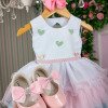 Vestido Vila Lele Bebe Lolo Saia Verde e Rosa