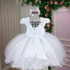 TECIDO 100% POLIÉSTER Confeccionado em tecido misto possui forro em poliéster e algodão para não incomodar a criança e proporcionando um caimento incrível e sofisticado, possui gola redonda, comprimento médio, mangas curtas, contém, também, elástico nas costas para melhor ajuste, acabamento com lindo laço na parte posterior do vestido completa o look dos sonhos! * Medidas podem variar em até 2cm. * Caso queira o vestido mais armado, recomendamos o uso do saiote ou anágua de armação, disponível no nosso site na categoria acessórios. * Tiara vendida separadamente, disponível em nosso site na categoria acessórios. * Calçados vendido separadamente, disponível em nosso site na categoria calçados. * LEMBRANDO QUE PODERA HAVER VARIAÇÃO DE TONALIDADE DO PRODUTO DEPENDENDO DA TELA DO SEU DISPOSITIVO